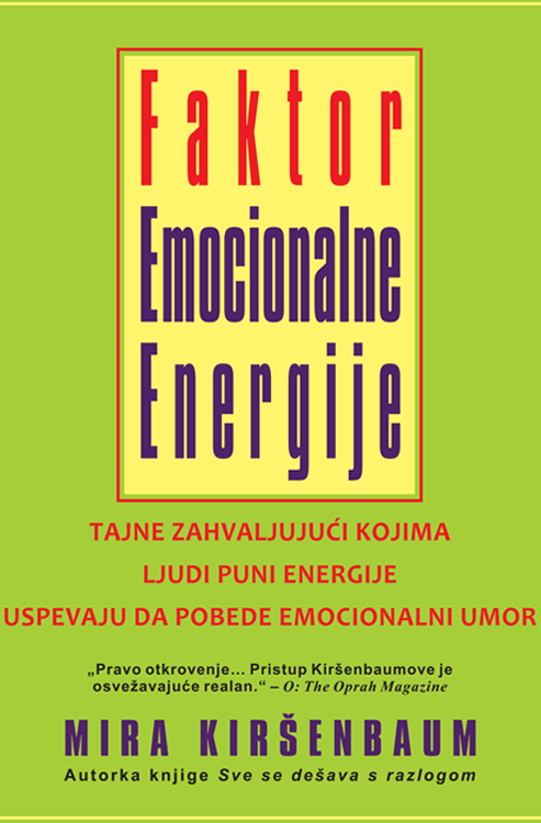 Ako je tako, niste jedini. Patite od emocionalnog umora – tog previše čestog pratioca našeg grozničavog savremenog života. Na osnovu iskustva psihoterapeuta i istraživača dugog preko dvadeset pet godina. Mira Kiršenbaum razvila je smeo novi program da bi vam pomogla da povećate koeficijent svoje unutrašnje energije i održite ga visokim do kraja života. U ovoj knjizi otkrićete dvadeset pet tajni za vitalan, srećan i nadom ispunjen život kakav zaslužujete, tako što ćete stvarati energiju kakvu vam ne mogu dati nikakve pilule, sklekovi niti energetski napici… onu vrstu energije koja pritiče u pomoć kad vaš organizam dosegne svoj limit. Ona se zove emocionalna energija. Uspešni ljudi koji imaju mnogo energije naučili su kako da je kontrolišu – a sada to možete i vi, uz pomoć tajni iz ove upečatljive knjige koja može da vam unapredi život. Otkrićete: